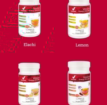Vestige Veslim Energy Drink Mix is a refreshing health drink designed to boost energy, improve metabolism, and support weight management. It helps keep you active and mentally alert throughout the day and serves as a healthy alternative to sugary or carbonated drinks. Available in flavours like Kashmiri Kahwa, Lemon, and Ginger, it can be mixed with hot or cold water for a quick, energizing beverage. It’s a dietary supplement, not a medicine, and should be used along with a balanced diet and regular exercise.
