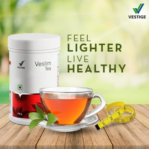 Vestige Veslim Tea is a low-calorie health drink made from green tea, green coffee beans, and Garcinia cambogia extract. It helps boost metabolism, supports fat burning, and keeps you energized throughout the day. With a refreshing honey-lemon flavor, it serves as a healthier alternative to regular tea or sugary drinks. Mix about one teaspoon (5 g) in hot or cold water for a revitalizing beverage. It contains natural caffeine, so consumption should be moderate and combined with a balanced diet and exercise for best results.