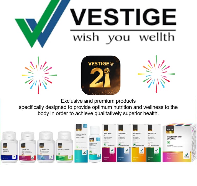 As an authorized independent distributor of Vestige Marketing Pvt. Ltd, we offer a wide range of high-quality health supplements, personal care, home care, and wellness products.